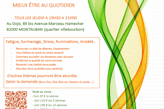Participez aux séances collectives de sophrologie à Montauban dès le 11 septembre 2025 pour réduire stress, anxiété et fatigue et retrouver bien-être et vitalité.